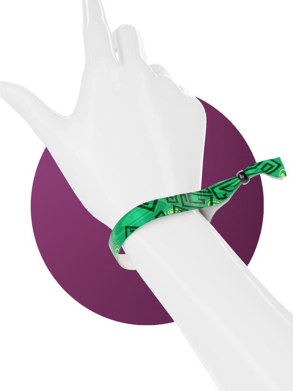 Crea pulseras de tela impresas personalizadas para el Festival Green Maze añadiendo logotipos y texto.