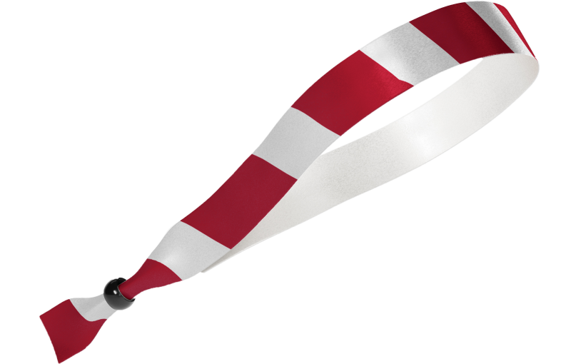 Crea pulseras de tela impresas personalizadas en color blanco aleatorio añadiendo logotipos y texto.