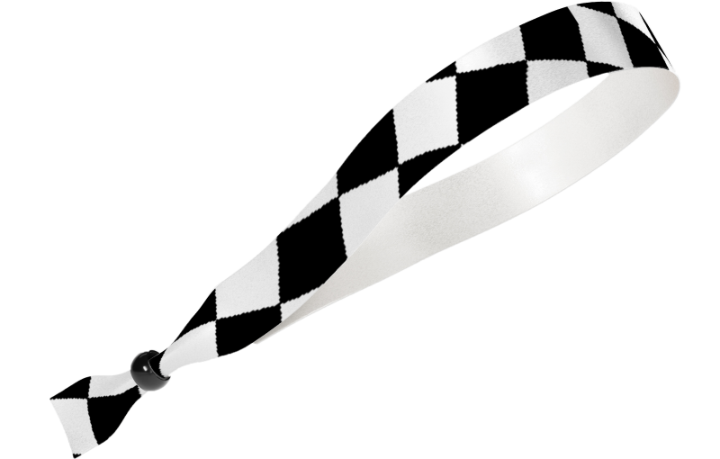 Crea pulseras de tela impresas personalizadas en color negro cuadrado añadiendo logotipos y texto.