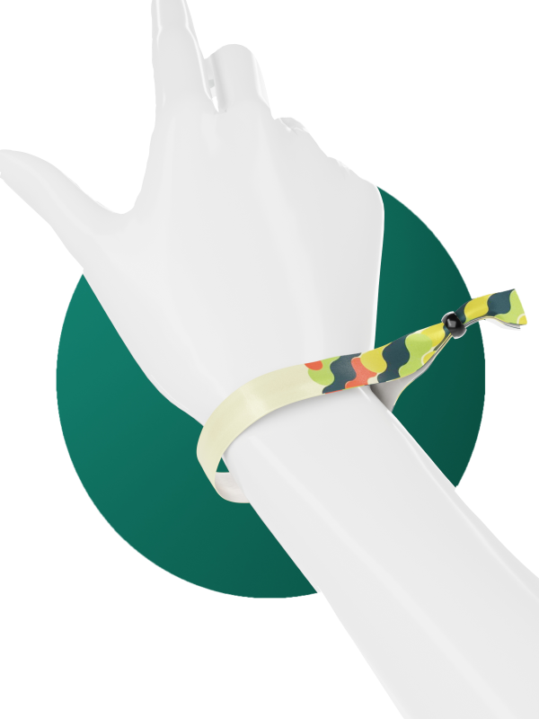 Crea pulseras de tela impresas personalizadas para festivales y eventos añadiendo logotipos y texto.