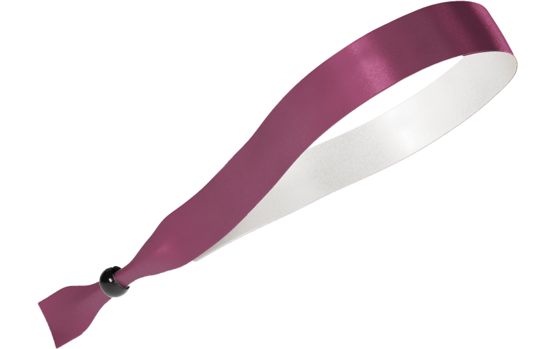 Crea pulseras de tela impresas personalizadas en color morado añadiendo logotipos y texto.