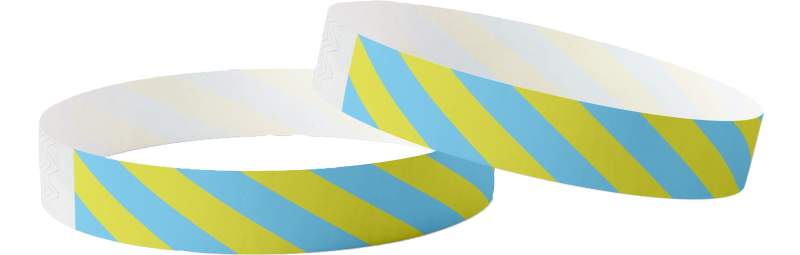Pide pulseras lisas Tyvek a rayas azules y amarillas con envío rápido y al mejor precio.